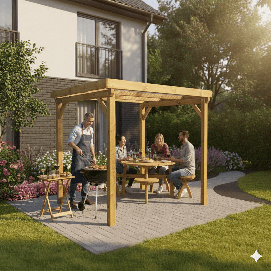 der Unterstand Bonn ist ein wahres Multitalent und eignet sich hervorragend für Gartengeräte, Bikeport, Fahrradunterstand, Gartenmöbel oder Grill, auch als Sitzplatzüberdachung für die Gartenbank oder Wetterschutz für Sandkasten und Spielecke im Garten.